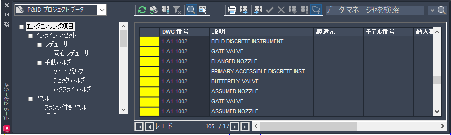 AutoCAD P&ID では、図面内の修正された対応アセットのそばに赤の雲マークが表示されます。データ マネージャのツールバーの[雲マークを非表示]ボタンを使用して、雲マークをオン/オフにすることができます。