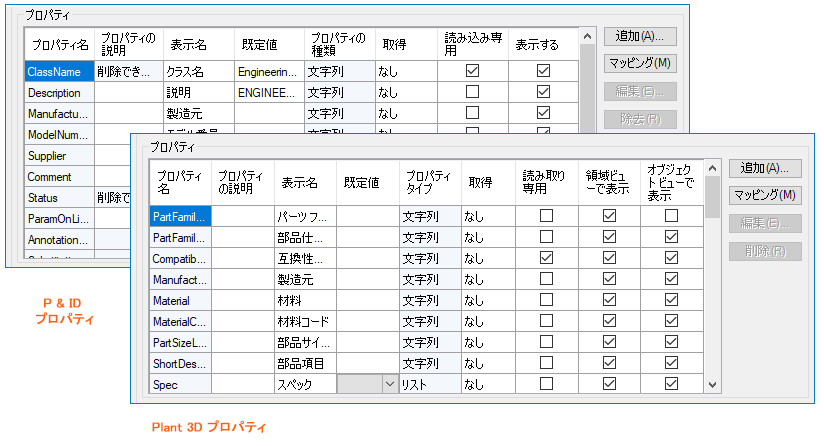 また、プロパティには、図面から抽出することができる非グラフィックな情報も保存されています。Plant オブジェクト クラス定義のプロパティは、次のいずれかのデータ型として定義できます。