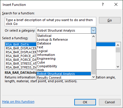 Insert function dialog