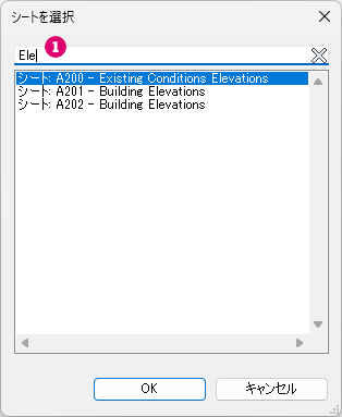 このツールを使用してビューを別のシートに移動する場合は、ダイアログ ボックスの上部にある検索バー を使用して、ビューの移動先のシートをすばやく見つけます。