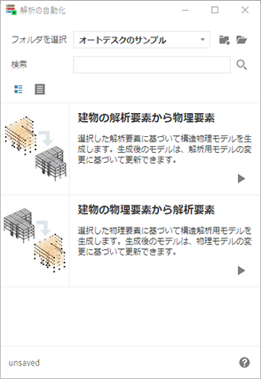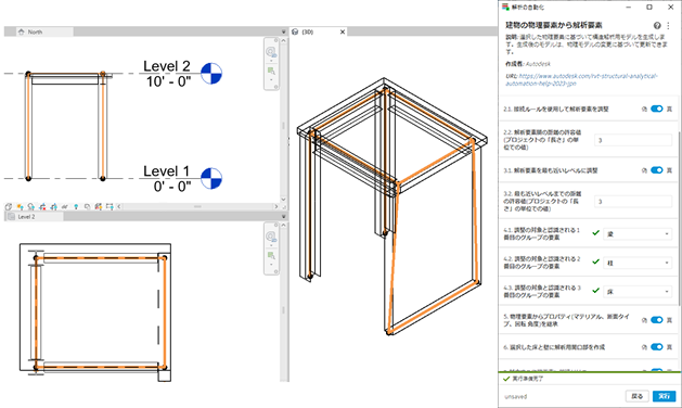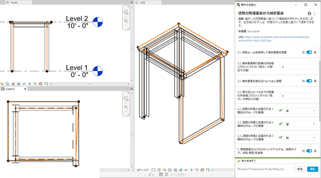 Revit モデルで、解析表現を作成または更新するための物理要素を選択します。