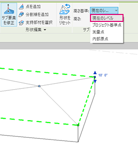 すべてのオプションで、点を修正または表示する際に要素の深さが計算されます。 たとえば、現在のレベル 1 の点を選択すると、厚さにより Revit に 10' と表示されます。 ![]() |