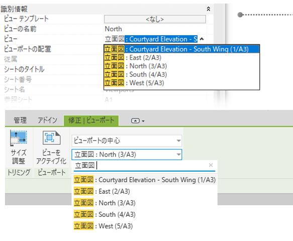ビューと位置合わせのパラメータは、ビュー プロパティとリボン パネルの両方で使用できます。