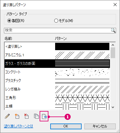 [管理]タブから[塗り潰しパターン]ダイアログにアクセスし、1 つまたは複数のパターンを選択して PAT ファイルに書き出します