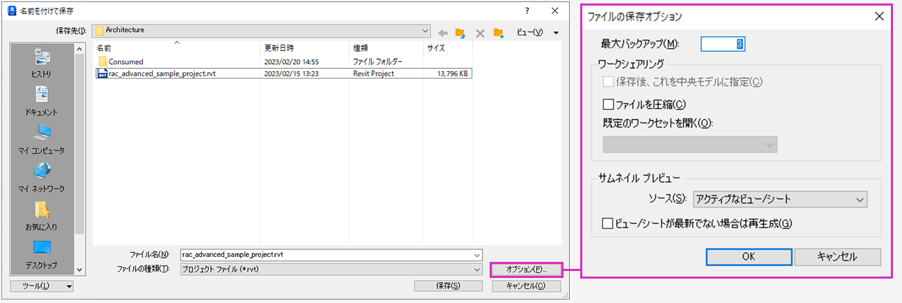 既定では、Revit でプロジェクトごとに 3 つのバックアップ ファイルが保存されます。しかし、1 つのプロジェクトについて Revit で保存されるバックアップ ファイルの数は変更することができます。