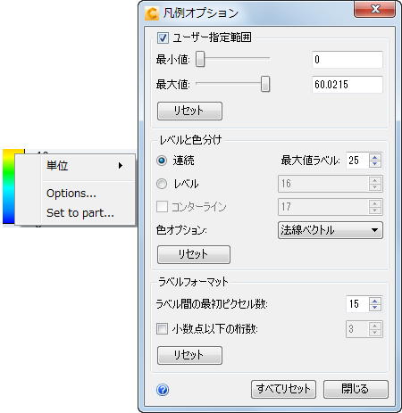 モデル サーフェス上に表示する結果量を指定するには、右クリックして[グローバル結果]を選択します。