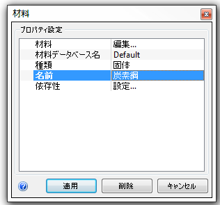 材料クイック編集ダイアログで、[種類] = [固体]に設定します。
