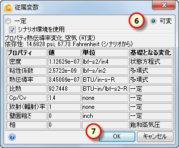 6. [従属変数]ダイアログで[可変]をクリックします。
