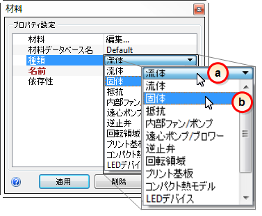 3. [材料]クイック編集ダイアログで、材料の種類を選択します。