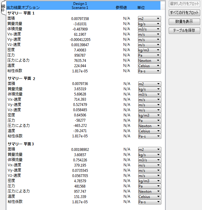 このステップでは、ディシジョンセンターのサマリー平面と重要値を使ってノズルの入口、スロート、出口での圧力損失を評価します。