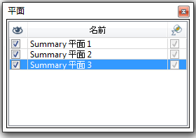 [サマリー]チェック ボックスをオンにして、3 つの結果平面をサマリー断面にします。