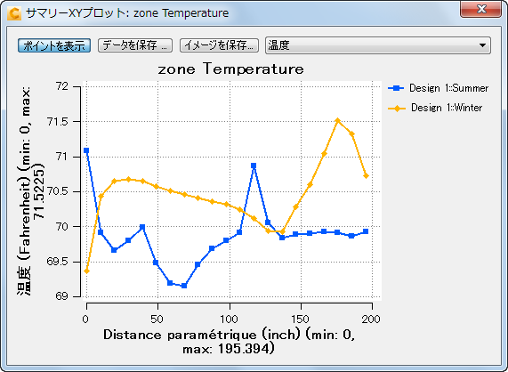 このステップでは、前に作成した XY プロットを使用して、居住ゾーンの上限について夏季と冬季の温度プロファイルを比較します。