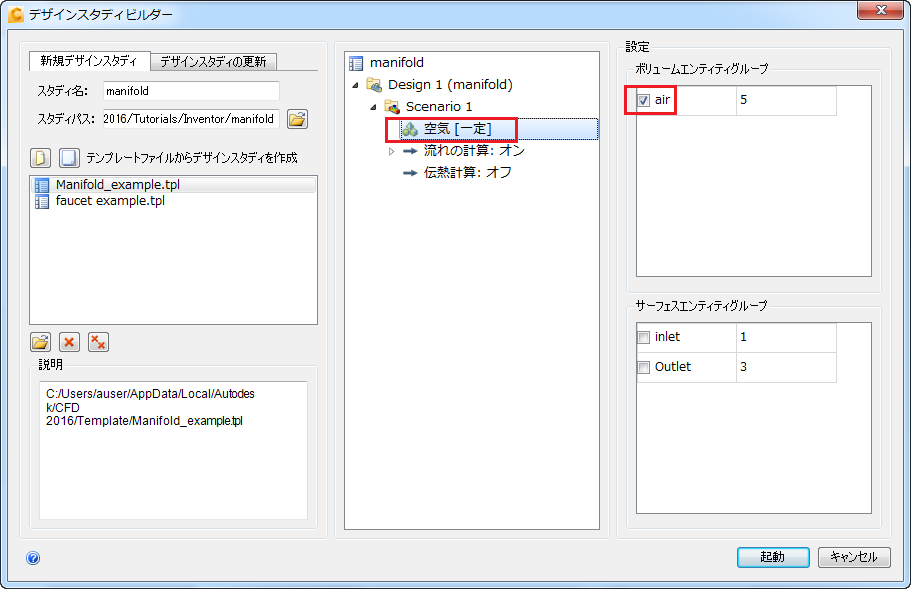 注: 注意してください。デザインスタディビルダー ダイアログを閉じてはいけません。