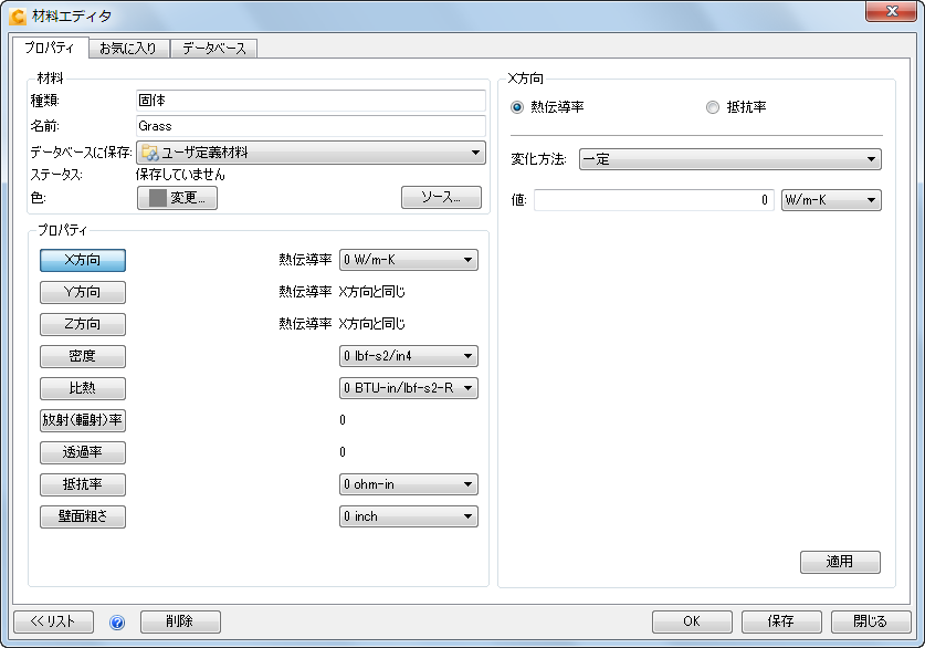 材料クイック編集ダイアログで、[種類] = [固体]に設定します。