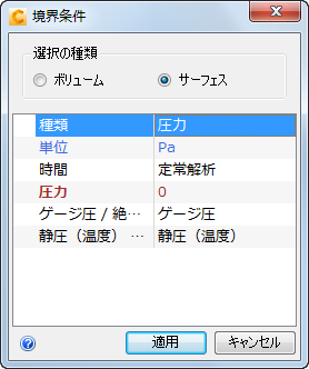 流出口圧力の境界条件を作成するには: