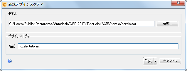 [ファイル マネージャ]ダイアログで、Users\Public\Public Documents\Autodesk\CFD 2023\Tutorials\<ファイルの種類>\nozzle にナビゲートします。