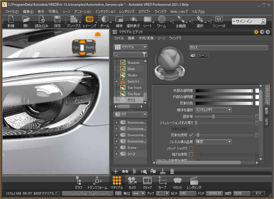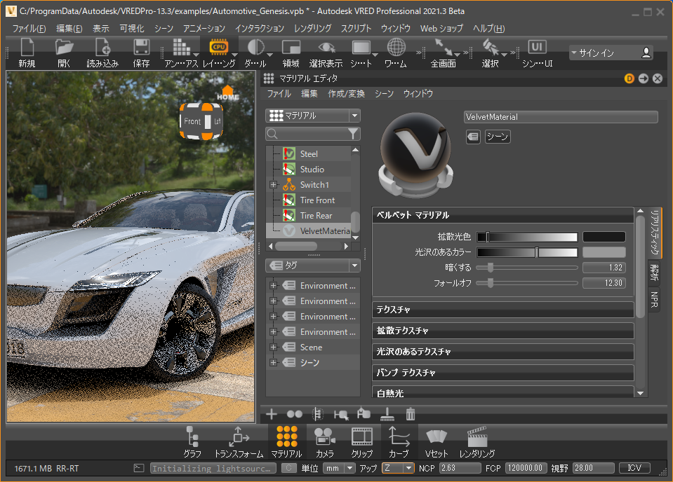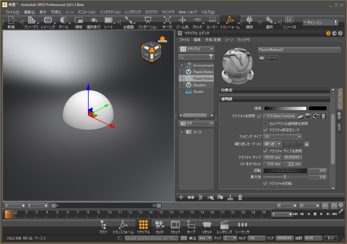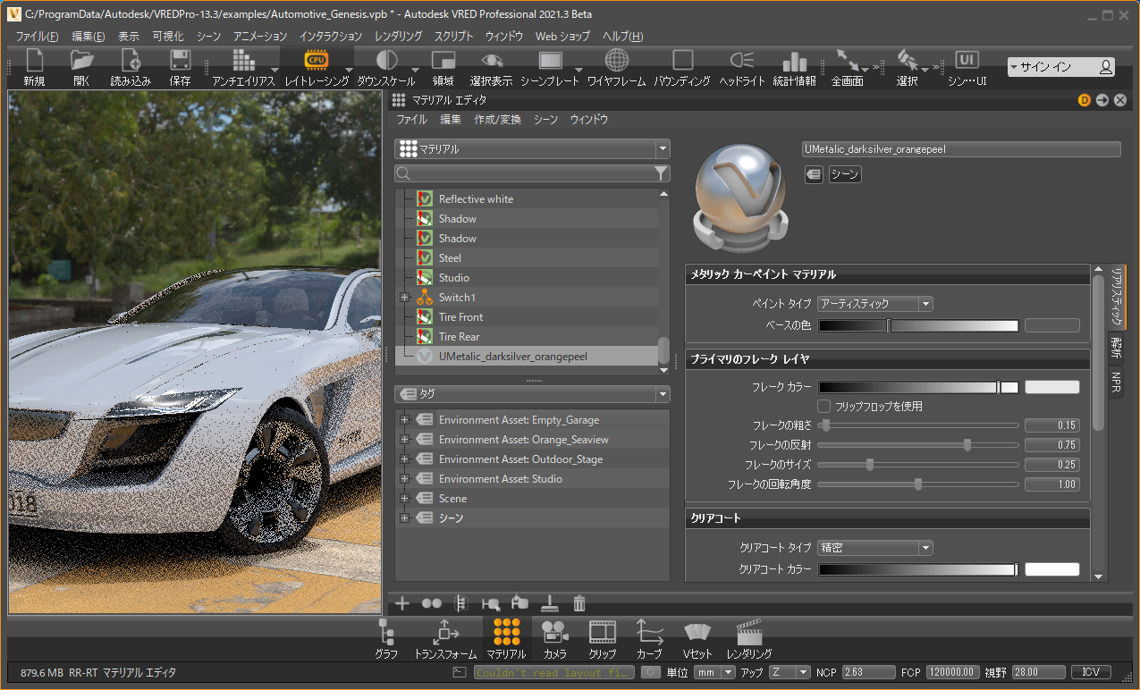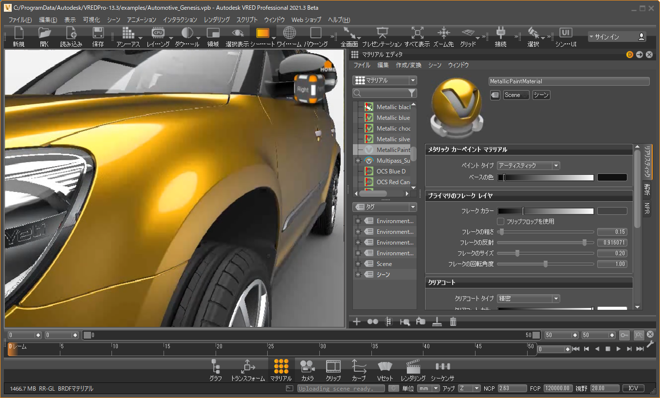 VRED マテリアルおよびマテリアル ツールのリファレンス情報については、「リファレンス」の「 マテリアル 」のセクションおよび「リファレンス」の「 環境 」のセクションを参照してください。
