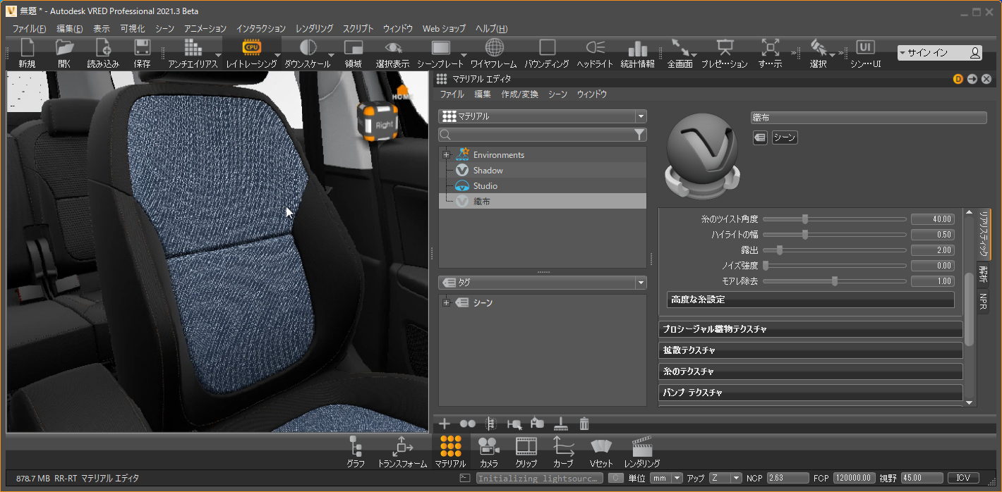 AXF、Substance、シャドウ プレーン、デカール、白熱光マテリアル、アセットなどの操作については、「ワークフロー」の「 マテリアル 」のセクションを参照してください。