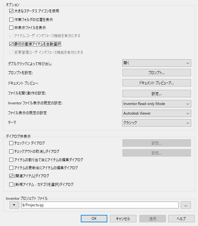 - Inventor ファイル表示の既定の設定