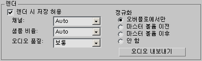 - 사용자가 장면을 렌더링할 때 오디오 출력이 포함되어야 함을 나타냅니다. 내보내진 오디오에 대해 옵션을 설정하려면 오디오 내보내기를 클릭합니다.