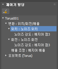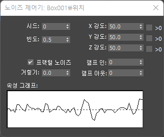 3ds Max에 노이즈 제어기 대화상자가 열립니다.