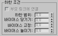 - 하한 조건 겹침을 설정합니다. 하한 조건 값이 0.0보다 작으면 상위 링크에 영향을 줍니다. 기본값은 0.0입니다.