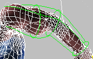 각 벌지 각도는 인접 링크에 모두 영향을 줍니다. 따라서 상위 및 하위 관절 각도에서 각 벌지의 횡단면 집합이 각 링크에 포함됩니다. 예를 들어 팔꿈치 및 팔목 관절과 연결된 벌지 각도로 팔뚝 링크를 변형할 수 있습니다.