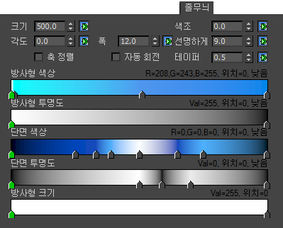 줄무늬 색상의 그라데이션을 지정합니다. 이 매개변수는 애니메이션할 수 있습니다.