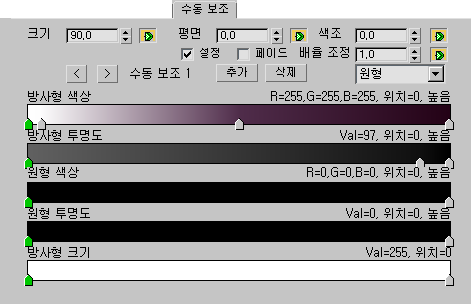 수동 보조 렌즈 플레어의 크기를 전체 이미지에 대한 비율로 제어합니다. 이 매개변수는 애니메이션할 수 있습니다.