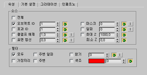같은 ID 채널 값을 여러 개의 재질에 지정하는 경우 이러한 재질은 모두 후처리됩니다.