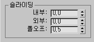위: 내부 및 외부 0.0으로 설정(슬라이딩 없음)