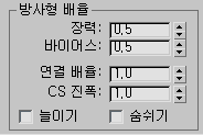 - 횡단면 진폭은 링크에 돌출 각도 횡단면이 있는 경우에만 영향을 줍니다. 0.0에서는 횡단면 변형이 꺼집니다. 값이 1.0보다 크면(최대값 10.0) 횡단면 효과가 증가됩니다. 기본값은 1.0입니다.