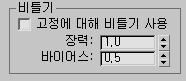 - 정점이 구부러지는 피벗점의 위치를 변경합니다. 바이어스는 스플라인을 따라 관절의 한 측면 또는 다른 측면으로 효과를 밉니다. 기본값 0.5는 관절의 중앙에서 구부립니다. 값이 0.5보다 낮으면 피벗을 하위 링크로 이동합니다. 0.0에서는 구부리기 효과가 선택된 링크로 제한됩니다. 범위는 0.0에서 1.0 사이입니다. 기본값은 0.5입니다.