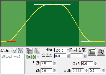 Step모양 제어기는 FootPlatform이 허공에서 이동할 때의 속도를 제어합니다. 즉, FootPlatform 모션의 천천히 들어옴 및 천천히 나감을 제어합니다.
