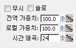이러한 컨트롤은 강조 표시된 레이어가 레이어 스택에서 레이어 앞의 항목, 즉 리스트에서 먼저 나오는 항목과 상호 작용하는 방법을 결정합니다. 솔로 및 시간 왜곡을 제외하면 스택의 첫 번째 레이어에는 컨트롤을 사용할 수 없습니다.