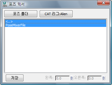 포즈 믹서를 사용하면 포즈를 저장한 다음 CATRig에 다시 로드할 수 있습니다. 포즈는 로드하는 중에 혼합될 수 있습니다.