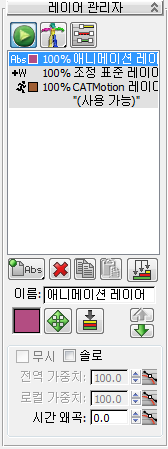 CAT의 레이어 시스템은 단순히 애니메이션 제어기를 보관 및 관리하는 메커니즘입니다. 이 시스템은 베지어, TCB, 선형, 쿼터니언, 오일러 등의 다양한 모든 키프레임 제어기를 비롯한 모든 3ds Max 애니메이션 제어기와, 스크립트 및 표현식 제어기와 제약 조건 등의 절차 제어기가 지원됩니다.