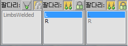 가운데: 조정할 팔다리 선택(고유하게 설정 설정/잠금 해제)