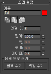 꼬리 설정 및 꼬리 강도 롤아웃을 사용하여 꼬리를 편집합니다.