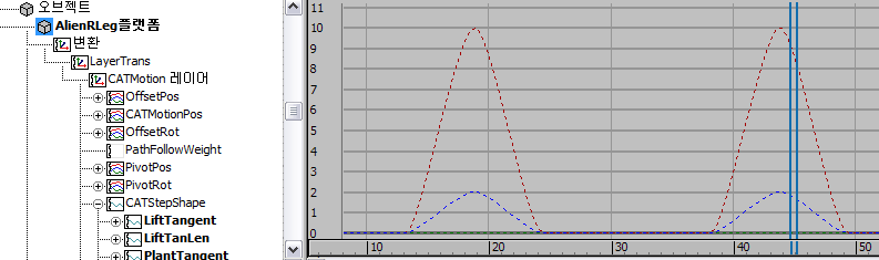 곡선 편집기가 열리고 CATStepShape 트랙의 곡선이 표시됩니다.