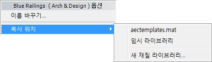 이 재질 또는 맵을 복사할 수 있는 다른 재질/맵 브라우저 그룹을 나열하는 하위 메뉴를 표시합니다.