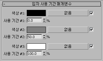 파티클이 색상 #3으로 변경되는 시기를 파티클 전체 수명의 백분율로 표현하여 설정합니다.