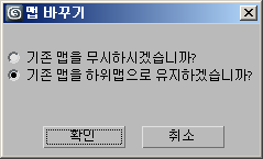 맵 바꾸기 대화상자는 맵 유형을 하위 맵을 포함할 수 있는 맵 유형으로 변경할 경우에 표시됩니다. 여기에서는 원래의("이전") 맵을 완전히 대체하거나 원래 맵을 새 맵의 하위 맵으로 사용할 수 있는 선택 항목을 제공합니다.