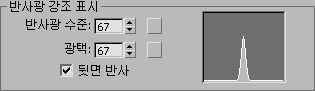반사광 강조 표시 강도에 영향을 미칩니다. 값을 높일수록 강조 표시가 점점 밝아집니다. 기본값은 0입니다.