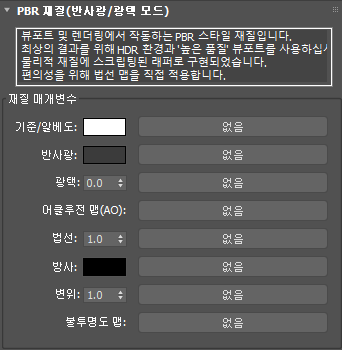 - PBR 맵 계산 방법을 토글합니다.