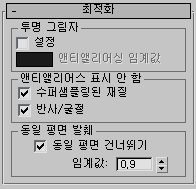 - 설정하면 반사나 굴절을 음영 처리할 때 2패스 앤티앨리어싱 도중에 패스 1만 사용됩니다.