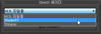 - DirectX 셰이더 롤아웃의 드롭다운 리스트에서 ShaderFX를 선택합니다.