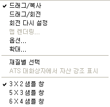 팝업 메뉴는 확대된 샘플 슬롯 창에서 사용할 수 있습니다. 아래의 "확대" 옵션을 참조하십시오.
