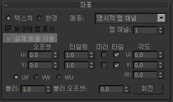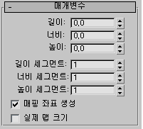 실제 크기 매핑을 작업하려면 두 가지 요구 사항을 충족해야 합니다. 먼저, 형상에 올바른 UV 텍스처 좌표 스타일이 할당되어야 합니다. 기본적으로 UV 공간의 크기는 형상의 크기에 해당해야 합니다. 실제 맵 크기라는 옵션이 텍스처 좌표를 생성할 수 있는 대부분의 대화상자와 롤아웃에 나타납니다(이 항목의 끝에 있는 리스트 참조). 매핑 좌표 생성을 켤 수 있는 대화상자나 롤아웃에서는 실제 맵 크기도 사용할 수 있습니다. 기본 설정 대화상자