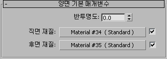 양면 재질 컨트롤을 사용하여 두 재질과, 재질 전체의 반투명도를 선택할 수 있습니다.